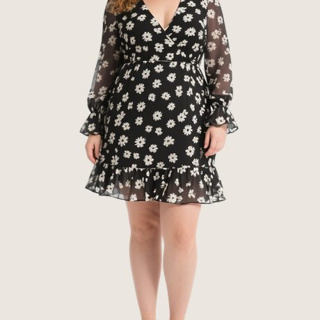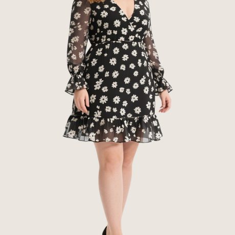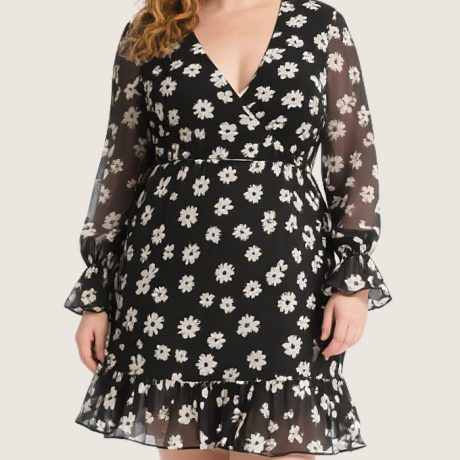 Be the first to review “Fresh Floral Deep-V Fitted Plus-Size Long-Sleeve Dress”