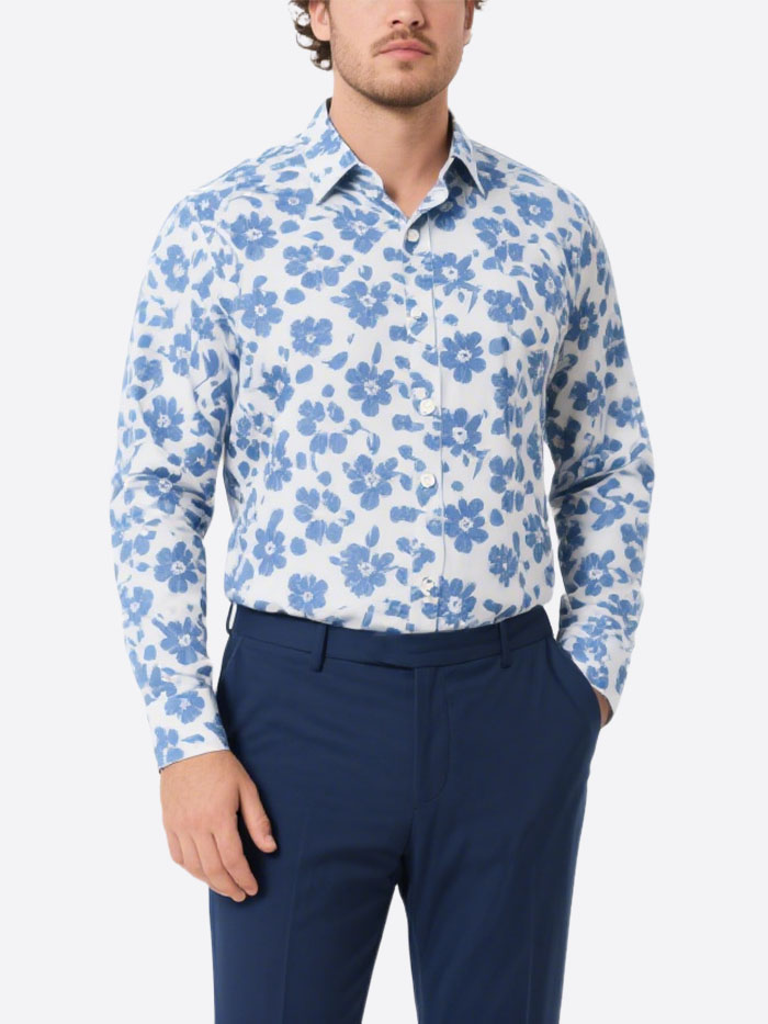 Men’s Large Size Fashion Floral Casual Long Sleeve Shirt