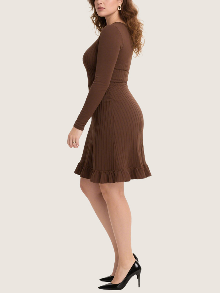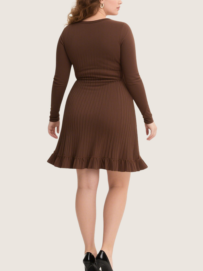Simple Round Neck Ribbed Plus-Size Long-Sleeved Dress