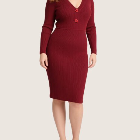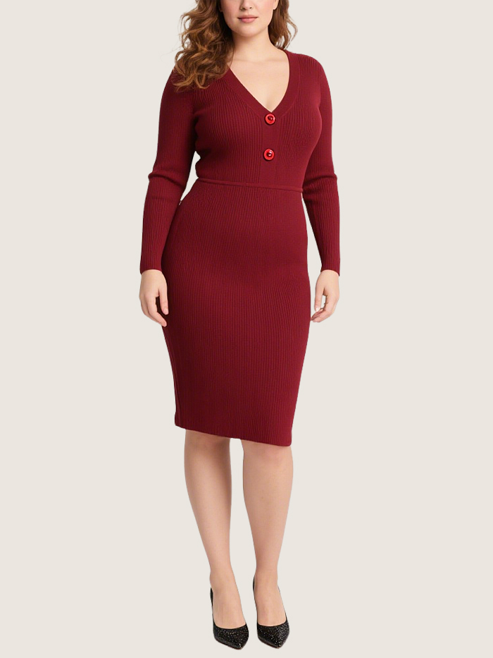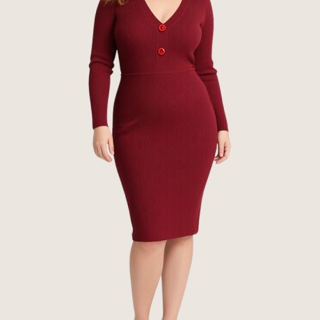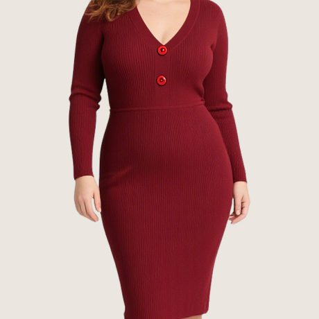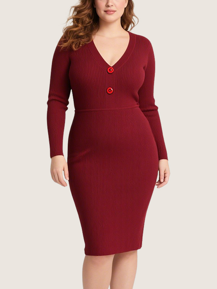 Be the first to review “Vintage Button-Embellished Plus-Size Long-Sleeved Dress”