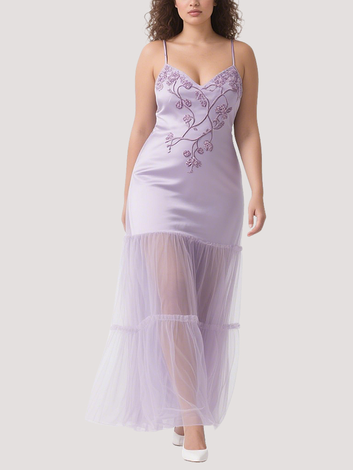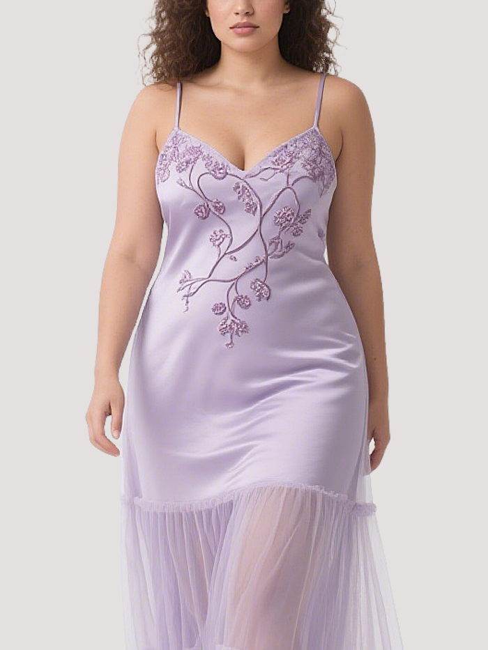 Women’s Exquisite Embroidered Plus-Size Sleeveless Mesh Dress