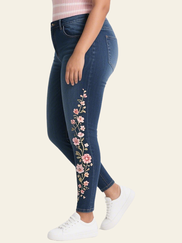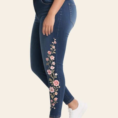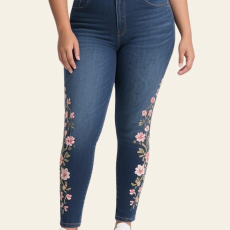 These stretch denim jeans are made from 75% cotton, 24% polyester, and 1% spandex. They offer a perfect fit for any body type. They offer excellent stretch, softness, breathability, and vibrant, fade-resistant colors.